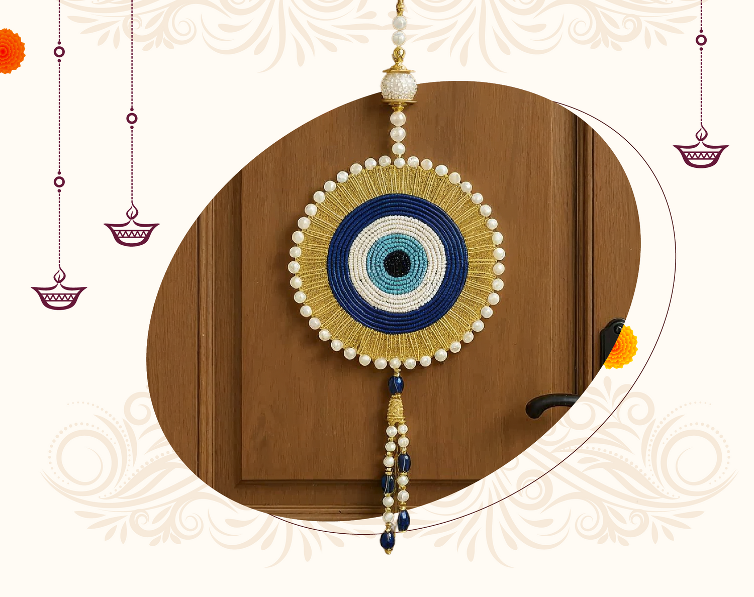 Elegant Evil Eye Pearl & Beaded Door/Wall Hanging Toran – 15 Inch Decorative Pair