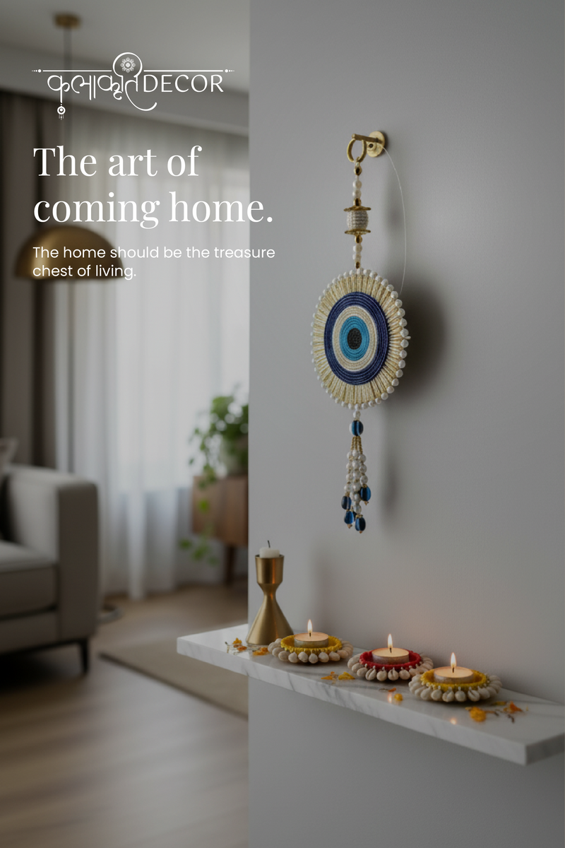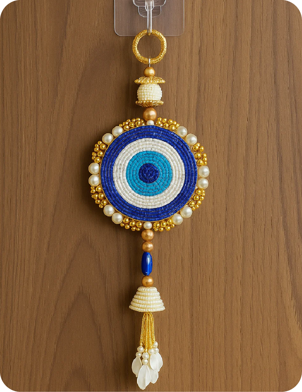 Elegant Evil Eye Pearl & Beaded Door/Wall Hanging Toran – 15 Inch Decorative Pair