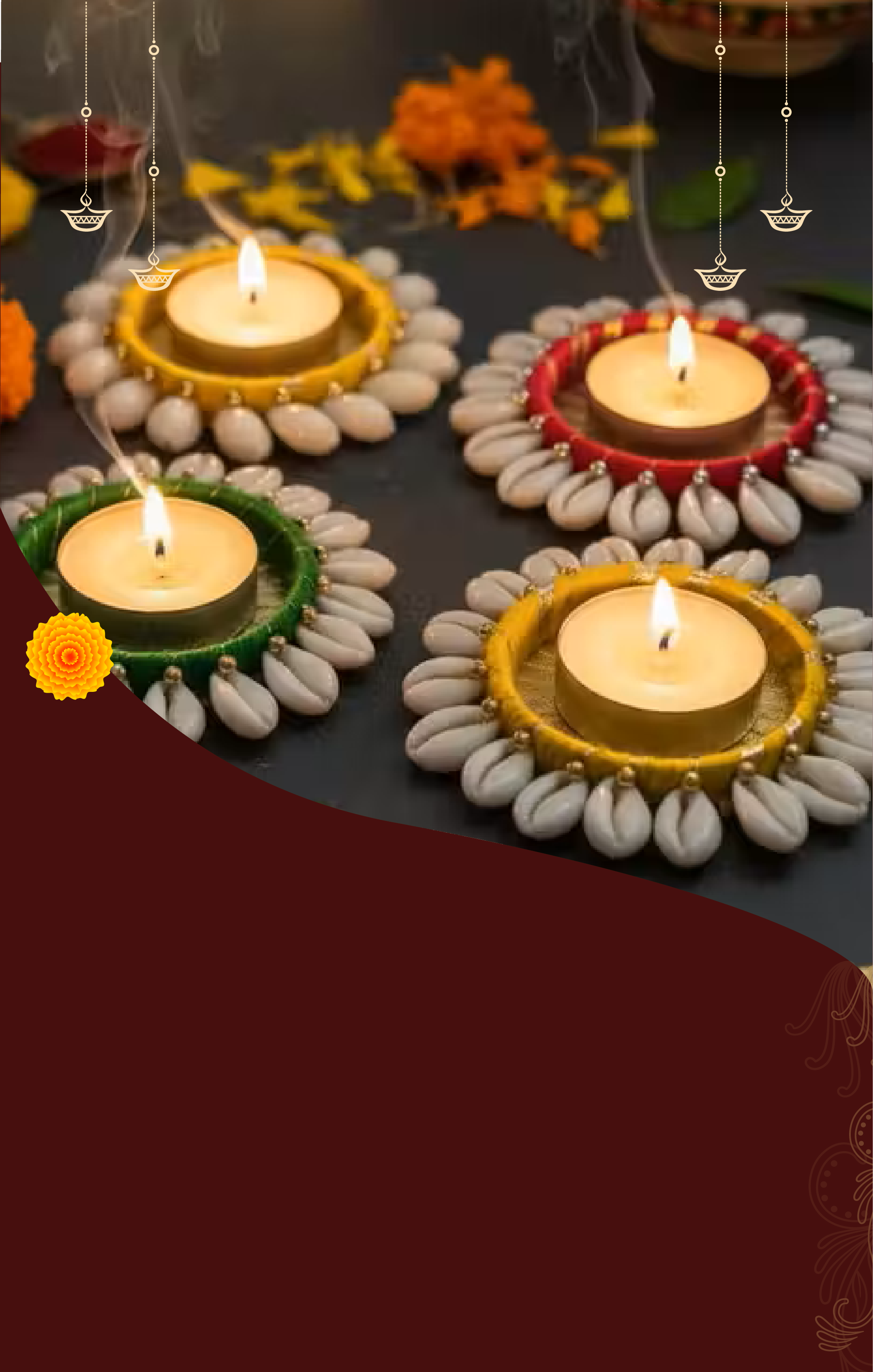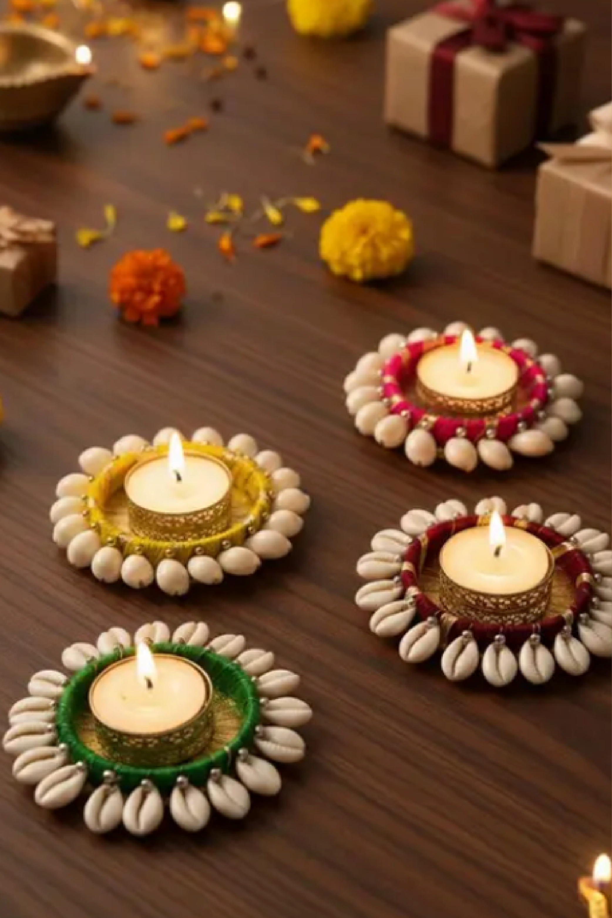 Kalakriti Handcrafted Cowrie Shell & Thread Diya Set of 4